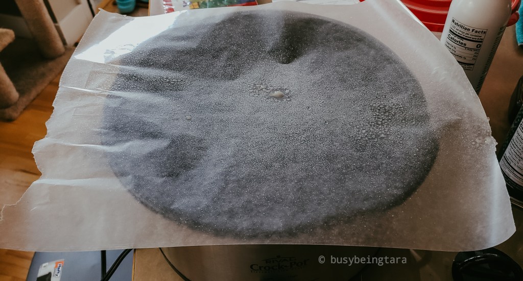 5. Measure your Parchment paper to make sure it fits your slow cooker. This will help pull the dough out. I sprayed the Parchment paper with oil to make sure the dough doesn’t stick.