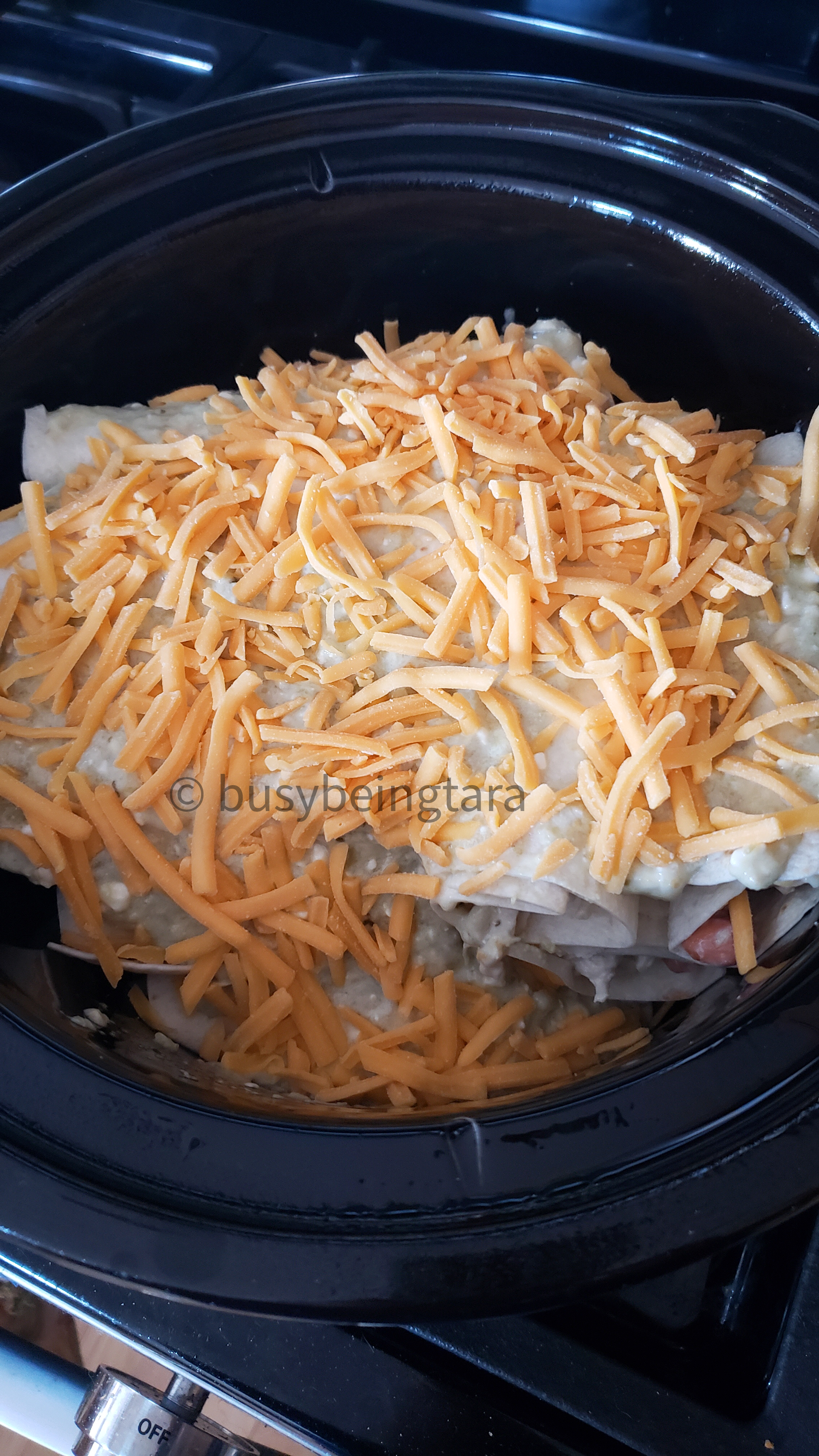 I set my timer for 3 hours and my slow cooker setting to LOW. Keep an eye out to make sure it doesn’t burn.